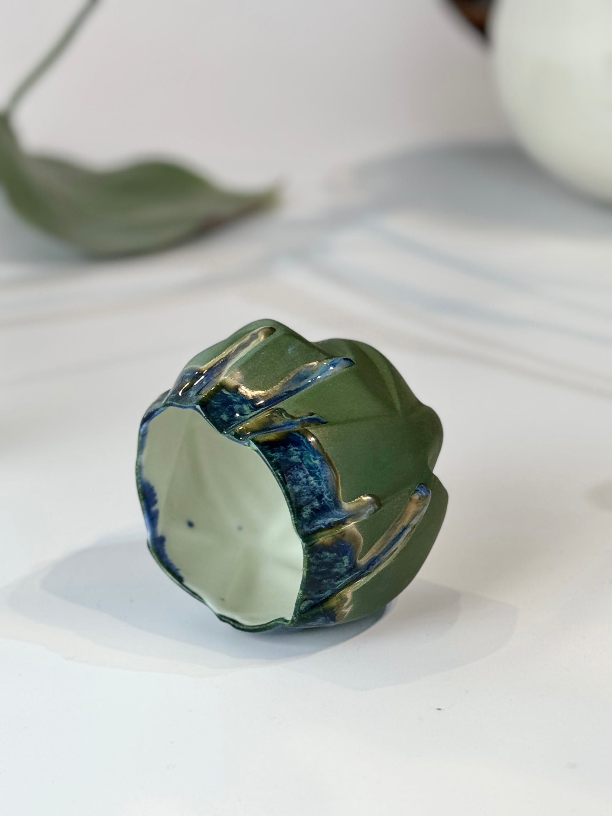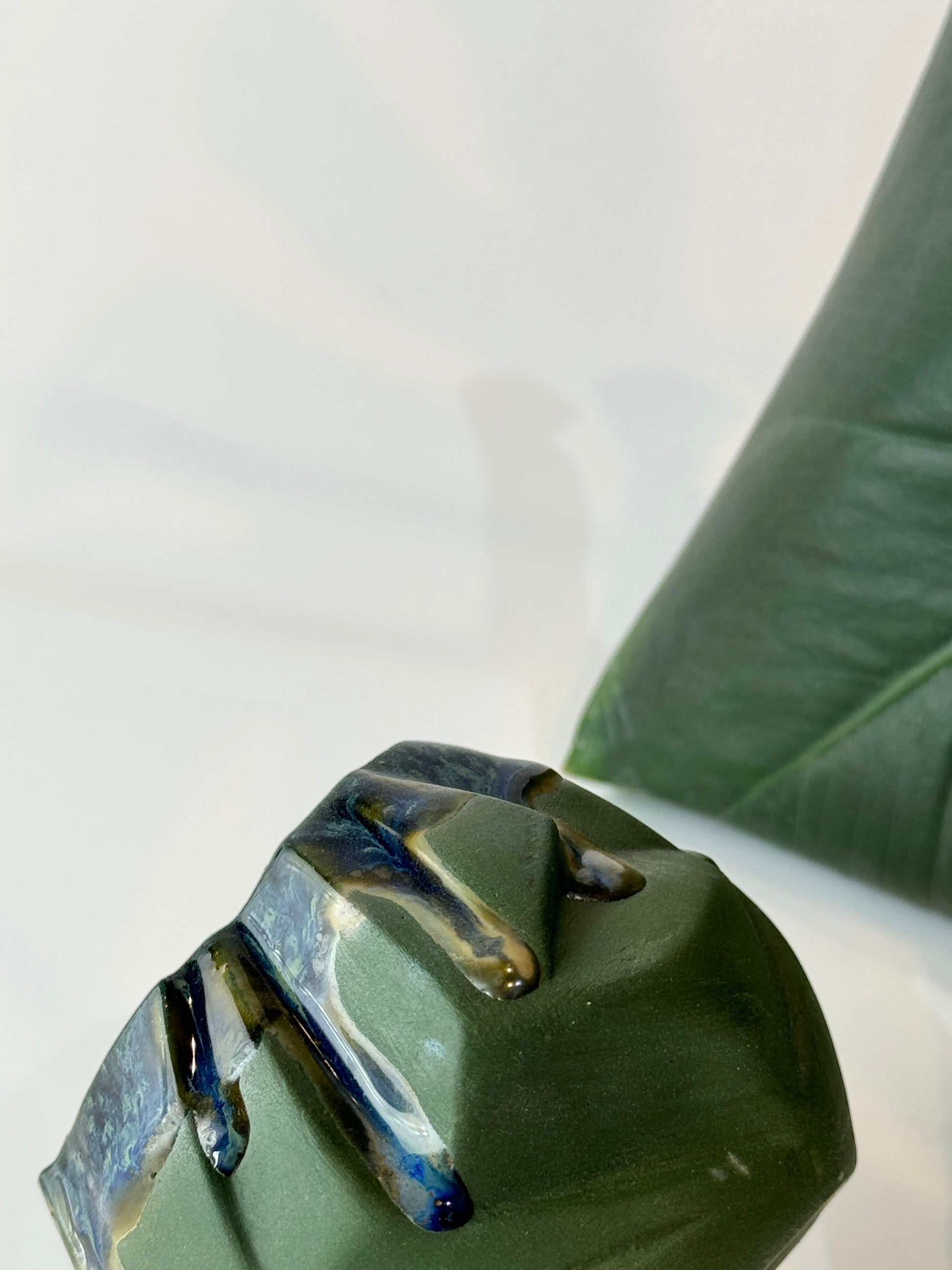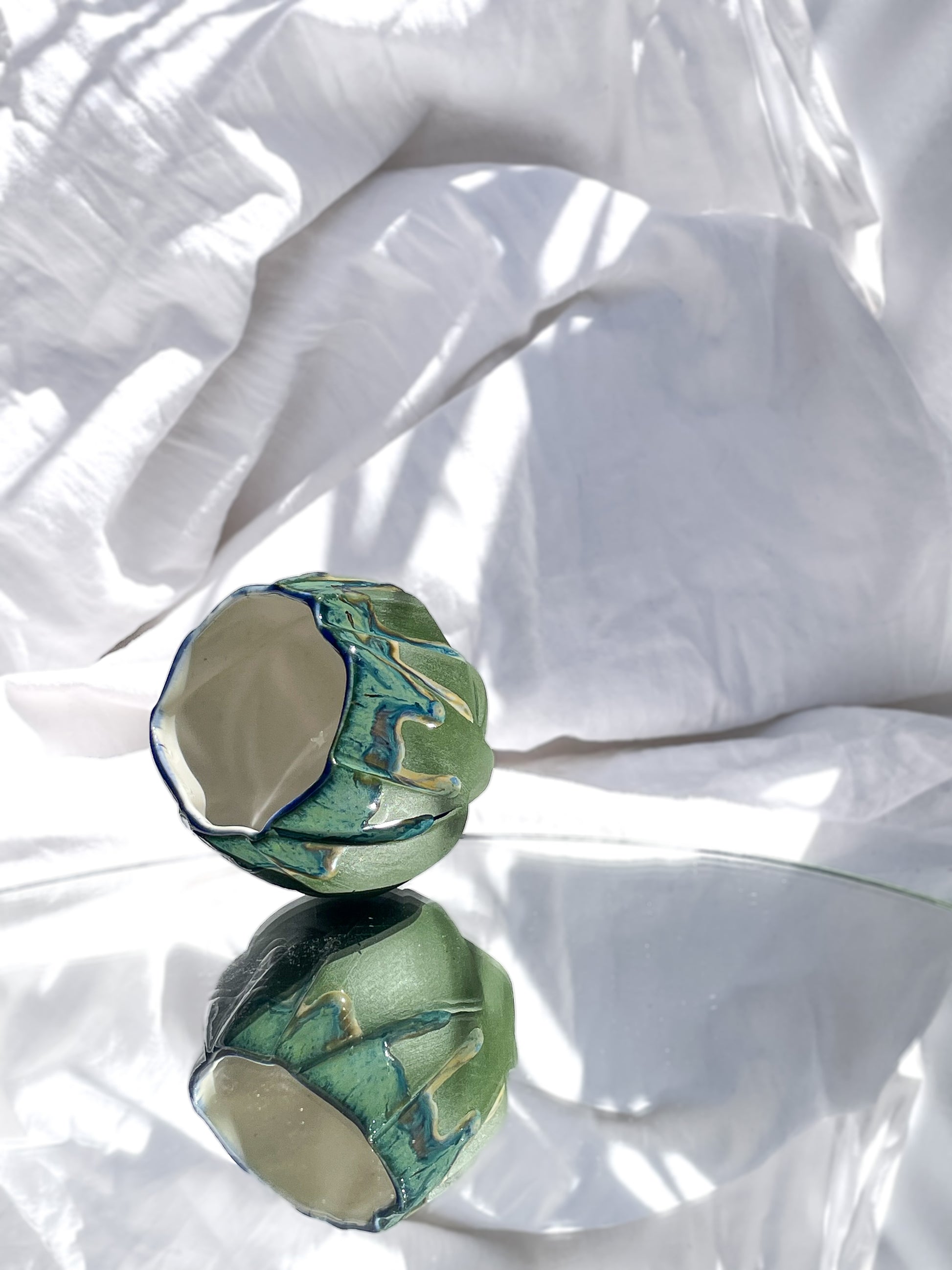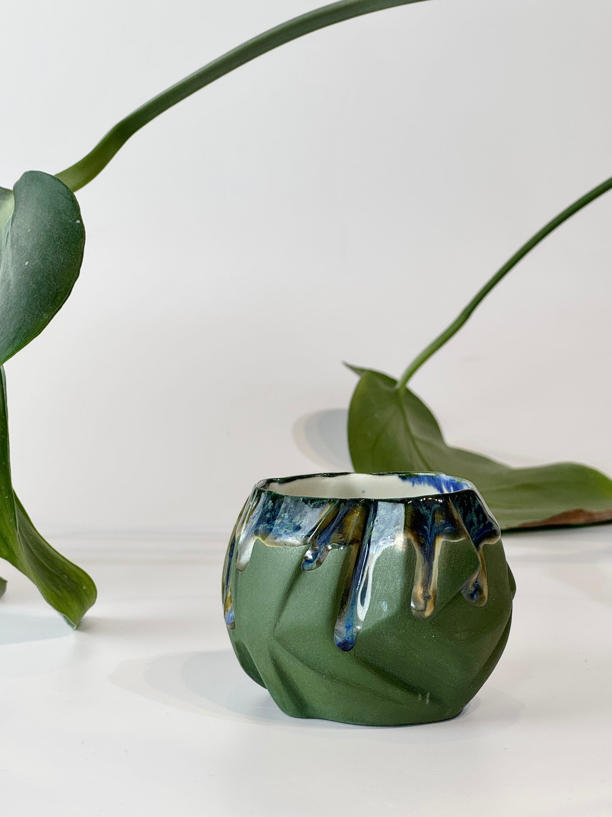De "Mos" beker ontleent zijn naam en inspiratie aan de levendige groene tinten van mos dat groeit in de diepten van de natuur en hun kalmerende energie belichaamt. Deze beker is ontworpen als een uniek kunstwerk dat de kracht en rust van de natuur in je huis brengt. Gemaakt van een speciale mix van keramiek, porselein en aardewerk, is de "Mos" beker een unieke creatie, waarbij elke beker zijn eigen karakter heeft.